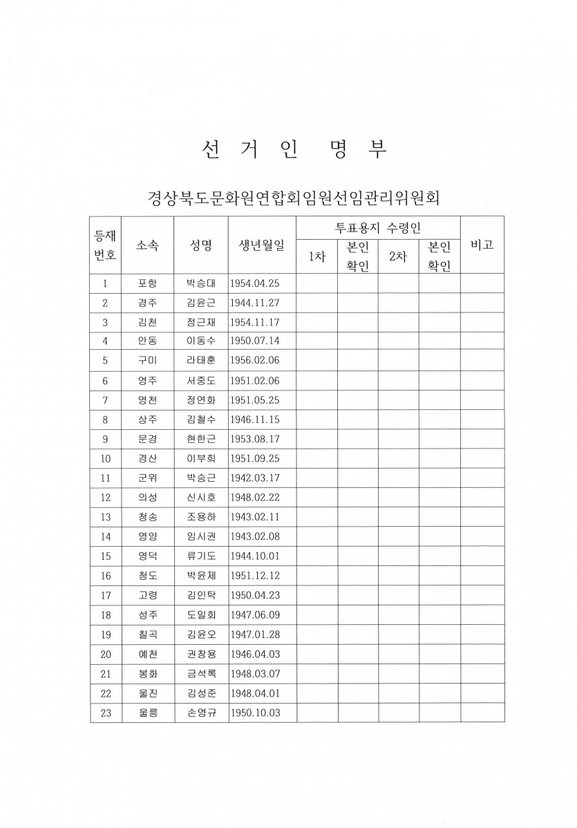 제17대 경상북도문화원연합회장 선거인명부 공고
